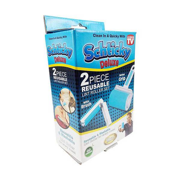 CLEAN IN A QUICKY WITH SCHTICKY - 2 Piece Reusable and Washable Lint Roller Set. Comes with handheld Schticky and travel Schticky.